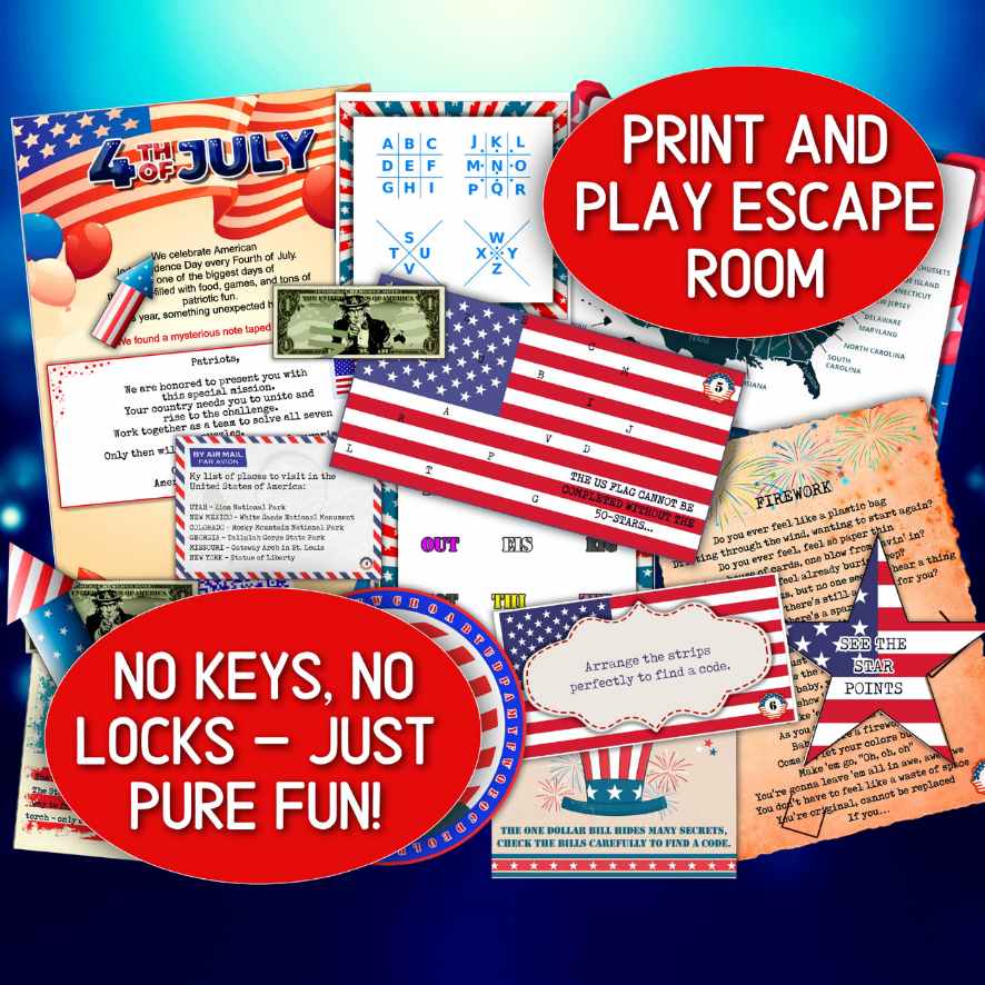 4th JULY ESCAPE ROOM - PRINT AND PLAY