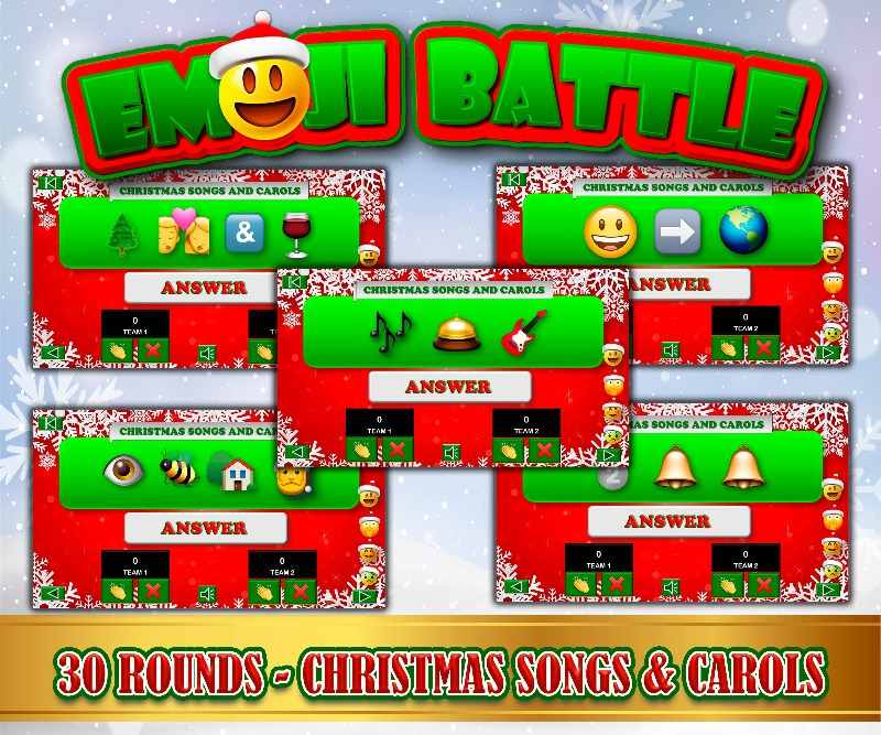 If you like fun, you've found the right game! Test your knowledge, logic, and reasoning skills with this exciting Christmas Guess Emoji Bundle Battle. This Christmas-themed emoji game bundle is a PowerPoint game where contestants try to guess the words represented by emojis. The team with the highest score wins the game!