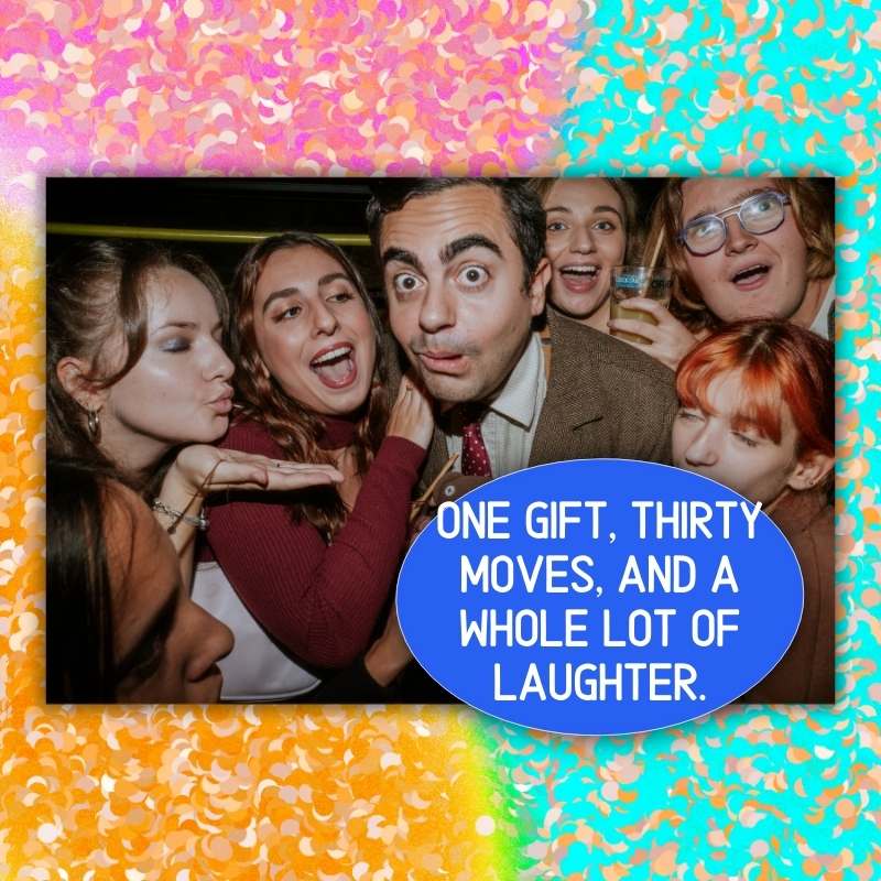 - Hilarious Storyline – Packed with 30+ pass actions using LEFT, RIGHT, and ACROSS to keep the gift moving and players laughing nonstop!