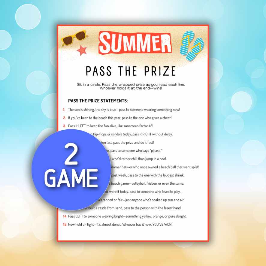 Make your summer bash unforgettable with this Summer Party Games Printable bundle! Whether you're hosting a beach-themed birthday, a backyard BBQ, or a family get-together, this instant download is your go-to for laughter-filled fun. Featuring two popular party games — "Pass the Prize" and "Left Right" — this set is designed to get everyone involved and keep the good vibes going! 🎉