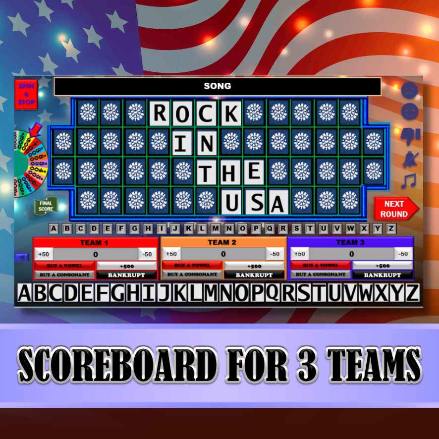 1 GAME WITH 20 ROUNDS and 1 TOSS UP ROUND ready to play, inspired by the popular TV SHOW Wheel of Fortune. Or you can create your own questions and answers; it’s very easy to customize.